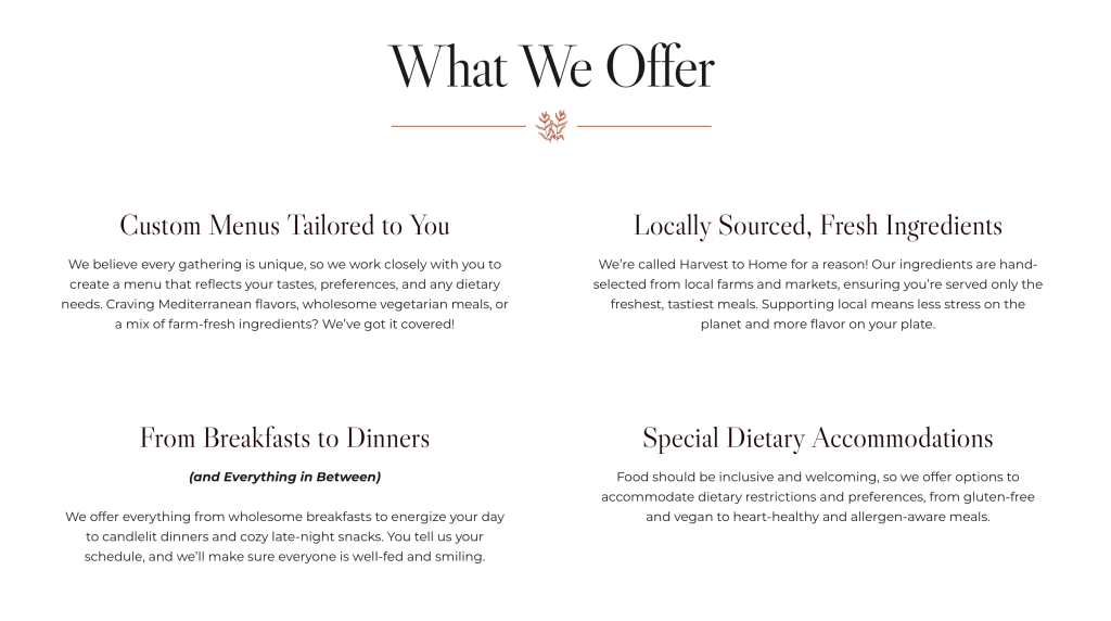 - Harvest to Home is family-run, community-held, and love-led, built for gatherings that feel like home, connection, and chosen family.